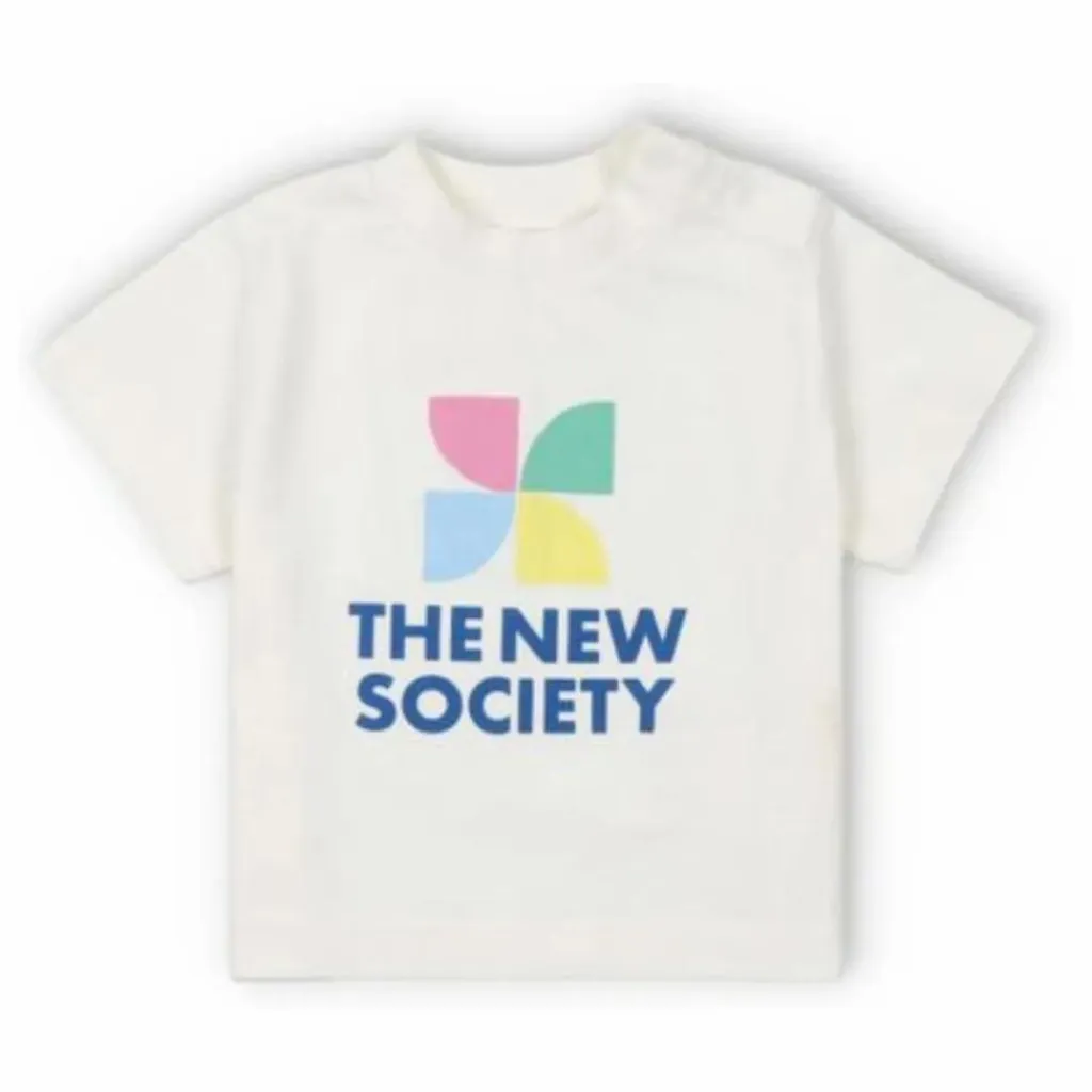 - T-shirt à manches courtes et épaules tombantes avec logo coloré sur le devant et ouverture des épaules par boutons-pression ton sur ton.
