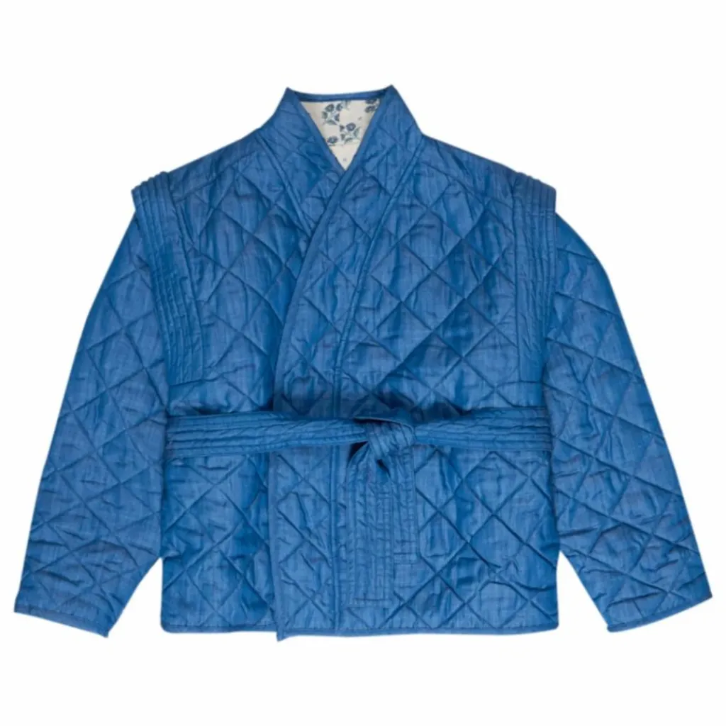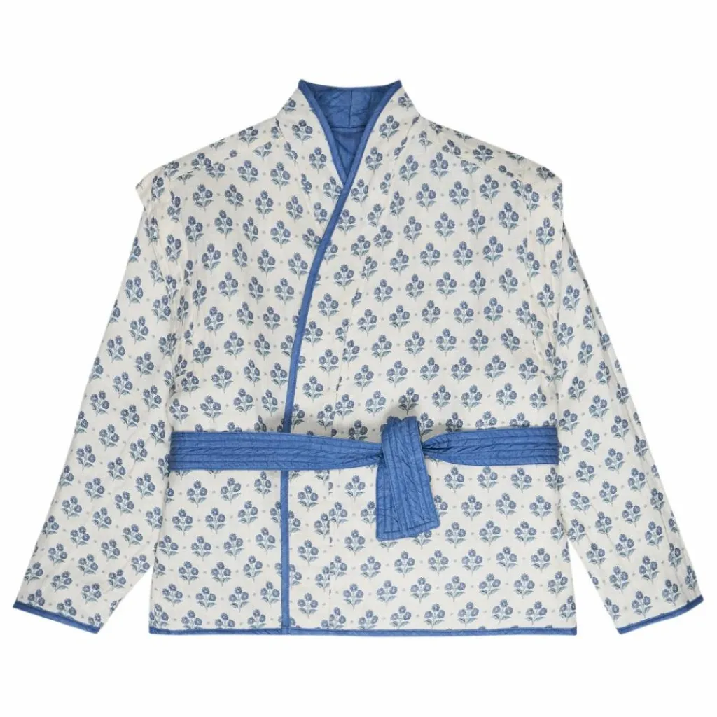 - Veste Eleni Woman, notre veste la plus vendue, maintenant en tissu 100% lin avec notre imprimé jacinthe et en denim 100% lyocell.