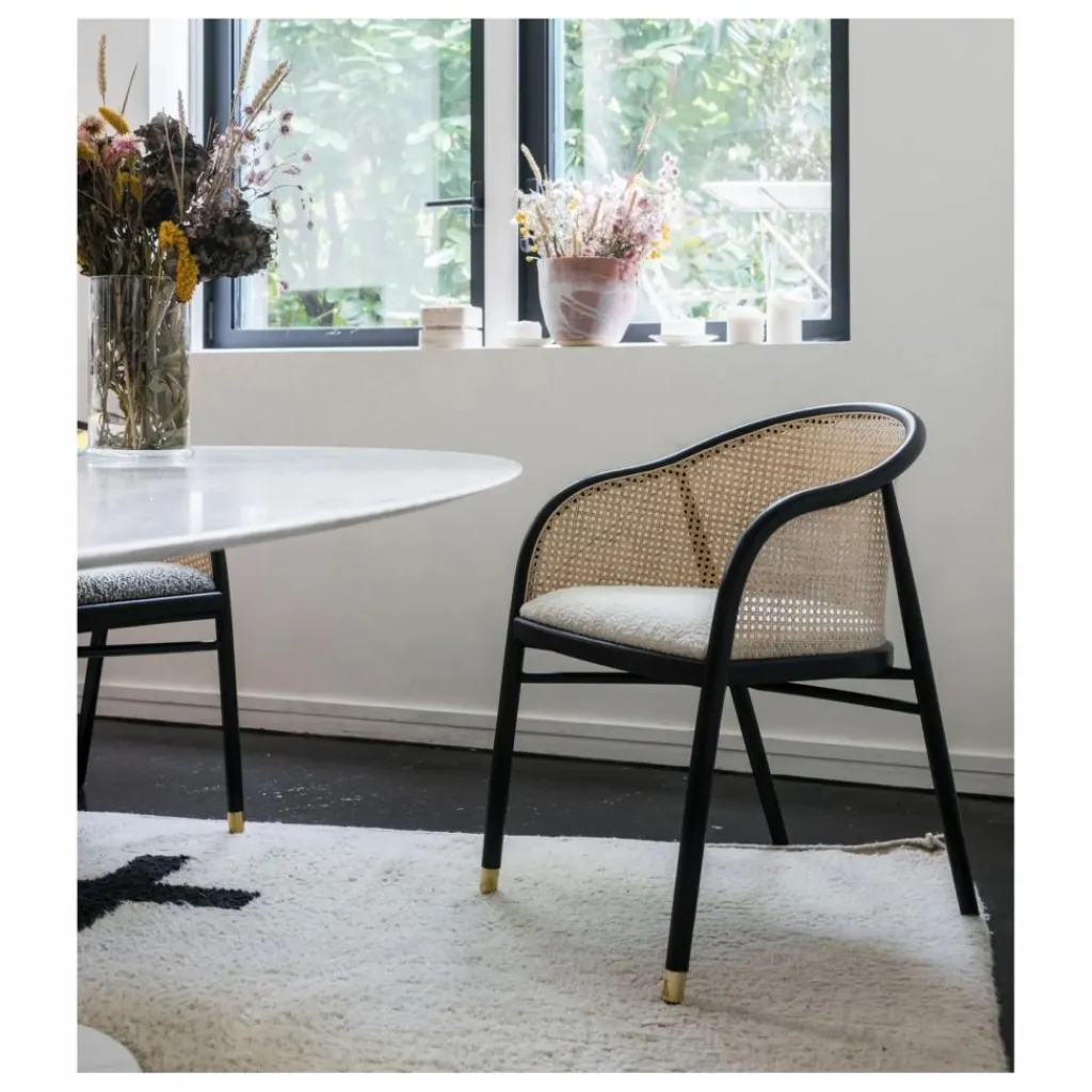 Matière de la chaise : hêtre finition noire, cannage naturel et laiton.