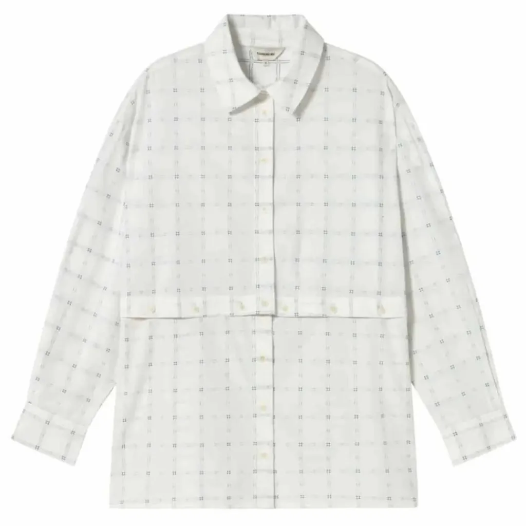 - Chemisier bleu détachable Nataly en coton biologique Col chemise Manches longues Coupe décontractée Fermeture frontale avec boutons Détails du tissu : broderie Détails du vêtement : le chemisier peut être détaché et porté en deux longueurs différentes Longueur du vêtement : long