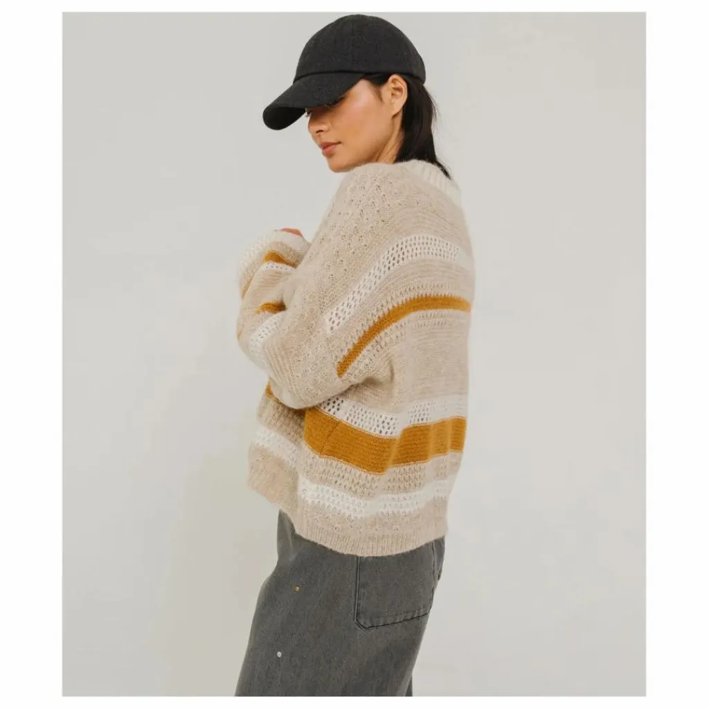 - DAVY est un pull loose à manches longues. Il mixe les couleurs et les différents points de tricotages. Ceci lui confère un côté artisanal, comme fait à la main. Ce pull est tricoté dans un fil ITn, en IT. Maille ultra douce, résistante et chaude