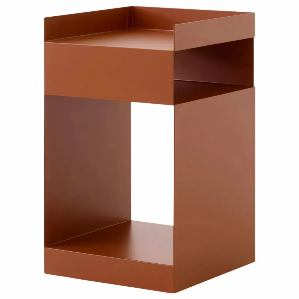 Le meuble de rangement Rotate présente une forme hautement fonctionnelle tout en restant discret. Inspiré de l’art japonais de l’origami, Rotate a été fabriqué à partir d’une seule feuille d’acier thermolaqué. Rotate a été conçu pour répondre à une grande variété d’utilisations, d’un chariot de bureau à une table de chevet ou un meuble de rangement pour la salle de bains. Facile à déplacer, cette pièce asymétrique et ouverte peut être insérée dans n’importe quel espace. Elle est disponible en plusieurs tons chauds et naturels.