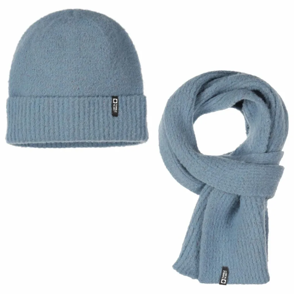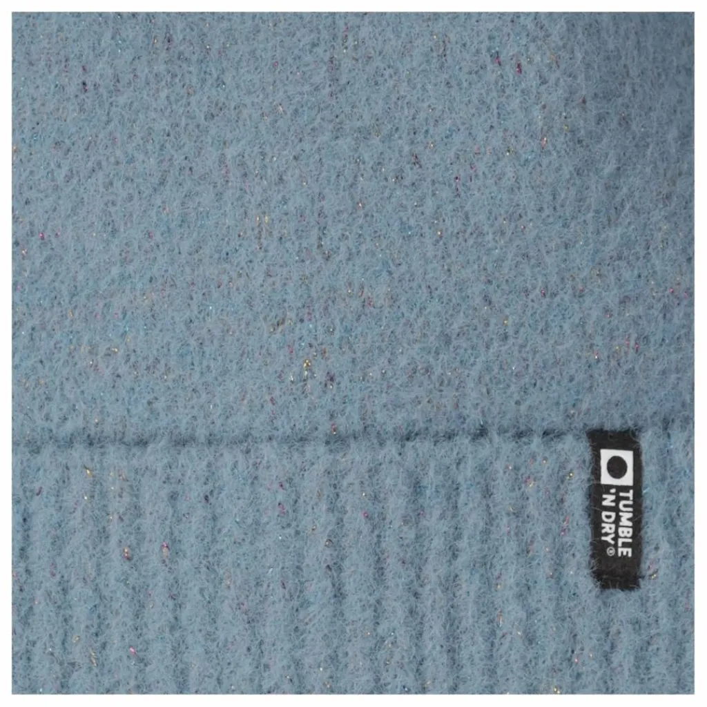 - Ce bonnet et cette écharpe bleu clair avec des paillettes sont les accessoires parfaits pour l’hiver. Ils ne grattent pas et sont bien chauds. Disponible en deux tailles différentes.