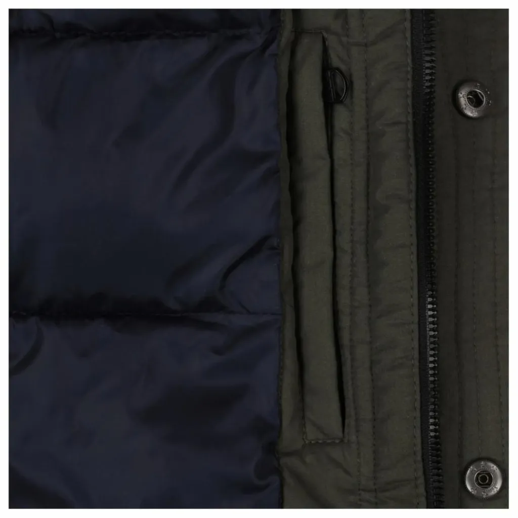 - Ce manteau d’hiver vert foncé de longueur moyenne est doté d’une fermeture à glissière pratique, d’une capuche et d’une doublure douce en fausse fourrure. Il comporte également des poches à rabat avec fermeture à bouton-pression, une poche intérieure avec fermeture auto-agrippante et des poignets élastiques. Le manteau d’hiver est fabriqué en polyester recyclé, a un rembourrage en Sorona et une finition bionic eco.