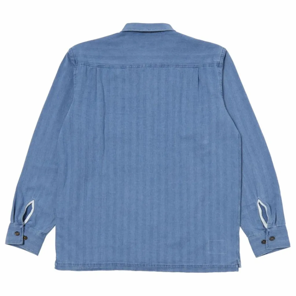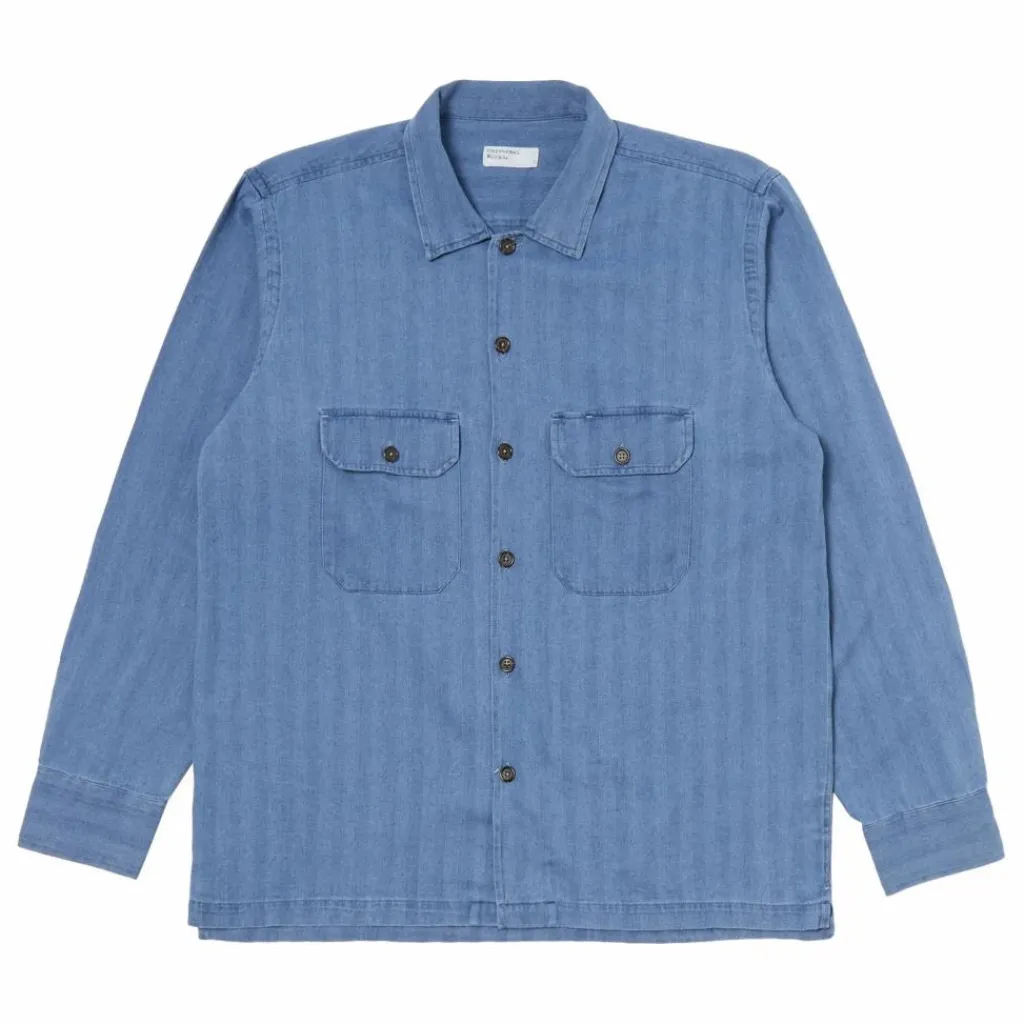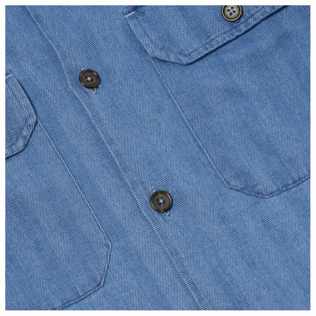 - Inspirée d’une visite dans un fast-food japonais, cette chemise est une version UW. d’une chemise de travail américaine » Garage » inspirée du milieu du siècle dernier. Elle est surdimensionnée, avec un col carré plat et un ourlet droit. Ce tissu en coton recyclé tire son nom de son tissage à chevrons qui rappelle l’épine dorsale du hareng. Cette version en denim est incroyablement populaire depuis plusieurs étés et nous ne pouvions donc pas la laisser de côté ! Il revient dans quelques styles classiques mais surtout nouveaux, que nous proposons à nouveau en deux délavages, l’un plus clair qui évoque l’été et l’autre plus foncé pour ceux qui préfèrent porter leur indigo au naturel. Il est doux à manipuler et si facile à porter qu’il acquiert une patine unique au fil du temps. – Coupe ample et carrée – Deux poches de poitrine surdimensionnées et boutonnées avec porte-stylos – Ourlet droit – Six boutons sur le devant – Col simple.