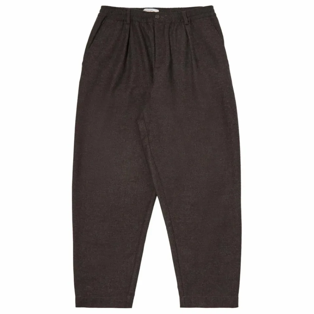 - L’un de nos modèles les plus vendus – un pantalon ample et fuselé avec un simple pli sur le devant. Nous avons ajouté un cordon de serrage à la taille pour un ajustement parfait. Un tweed à chevrons léger et subtil, fabriqué en Italie à partir de fils de laine recyclés mélangés à du coton. Un tissu d’hiver populaire en raison de sa polyvalence.