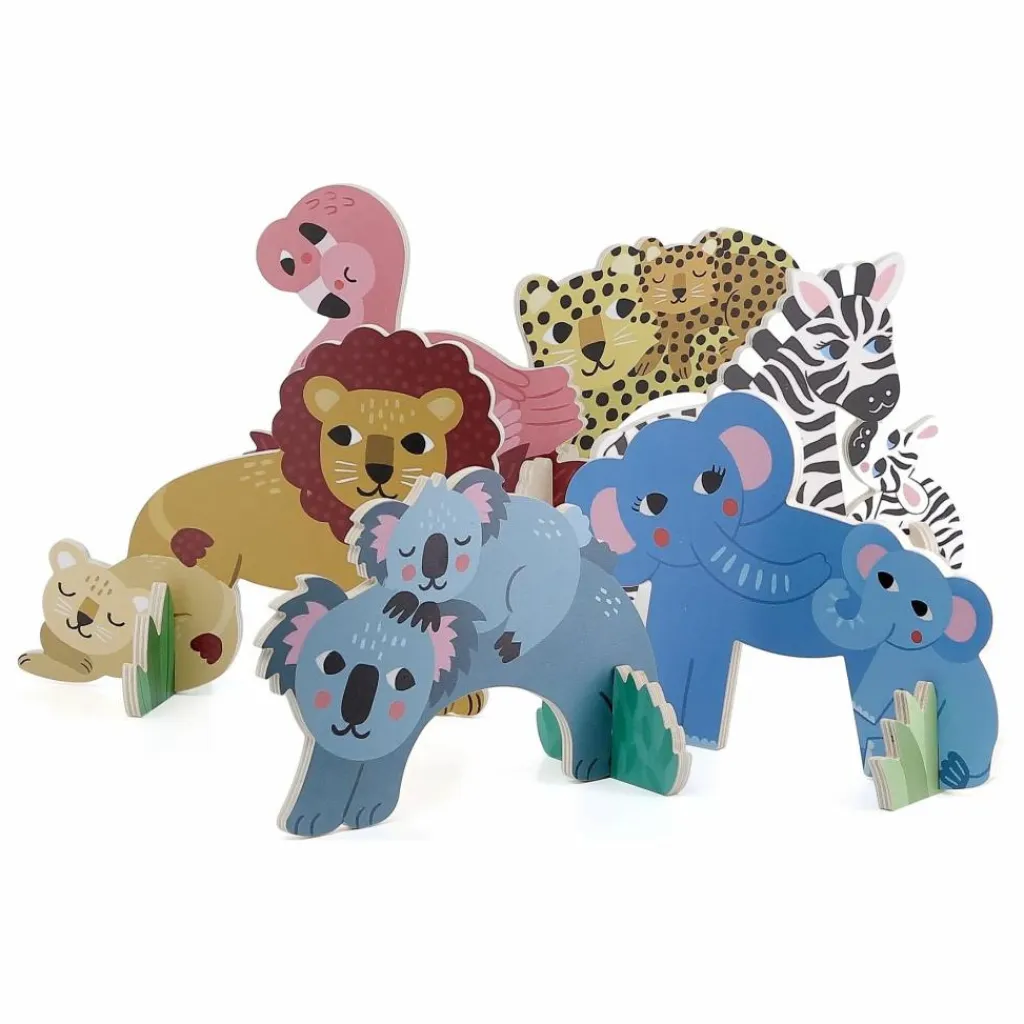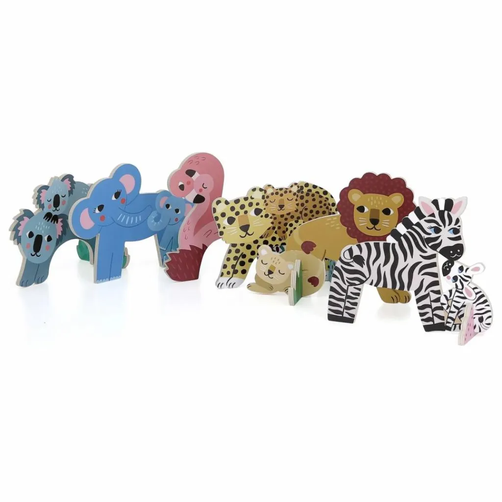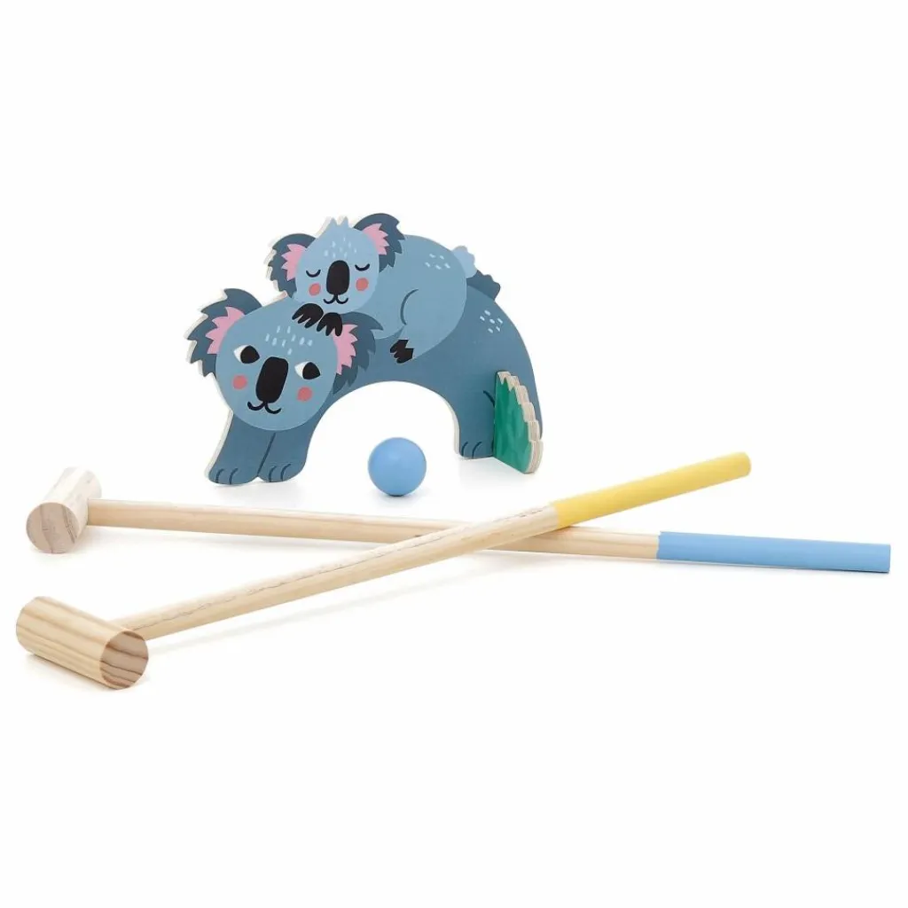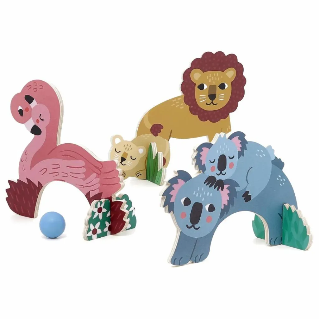 - • 6 arceaux animaux en bois.• 6 cales colorées en bois.• 2 balles en bois.• 2 maillets en bois.