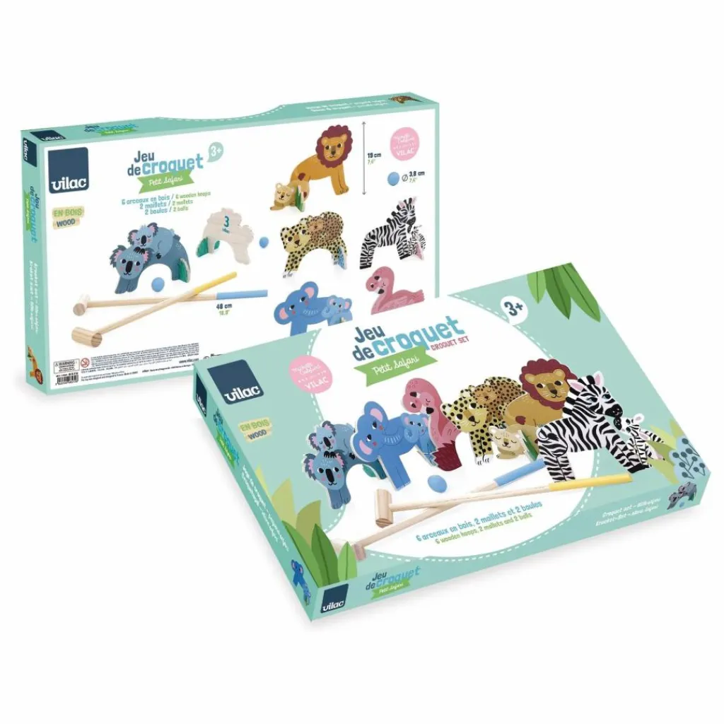 Le croquet en bois est un jeu traditionnel qui offre de nombreux avantages pour votre enfant. Il favorise l’activité physique : jouer au croquet nécessite de marcher, de courir et de frapper les balles avec précision, ce qui aide à développer la coordination œil-main et la motricité globale. Votre enfant va apprendre à manipuler le maillet et à viser les arceaux en forme d’animaux, ce qui stimule son habileté et son agilité. Cette activité de plein-air va l’encourager à passer du temps à l’extérieur et à partager ces moments ludiques avec ses amis ou les membres de sa famille.De nombreux avantages pour notre croquet en bois
