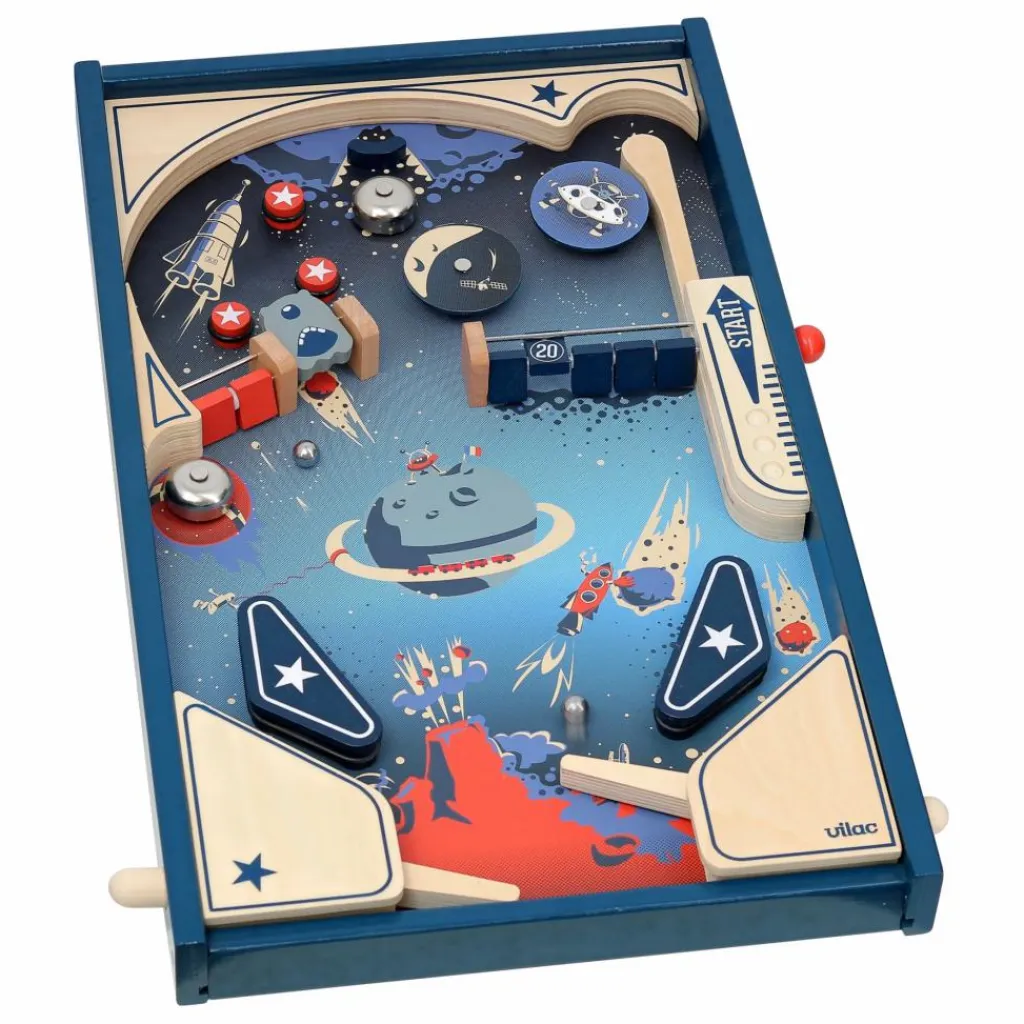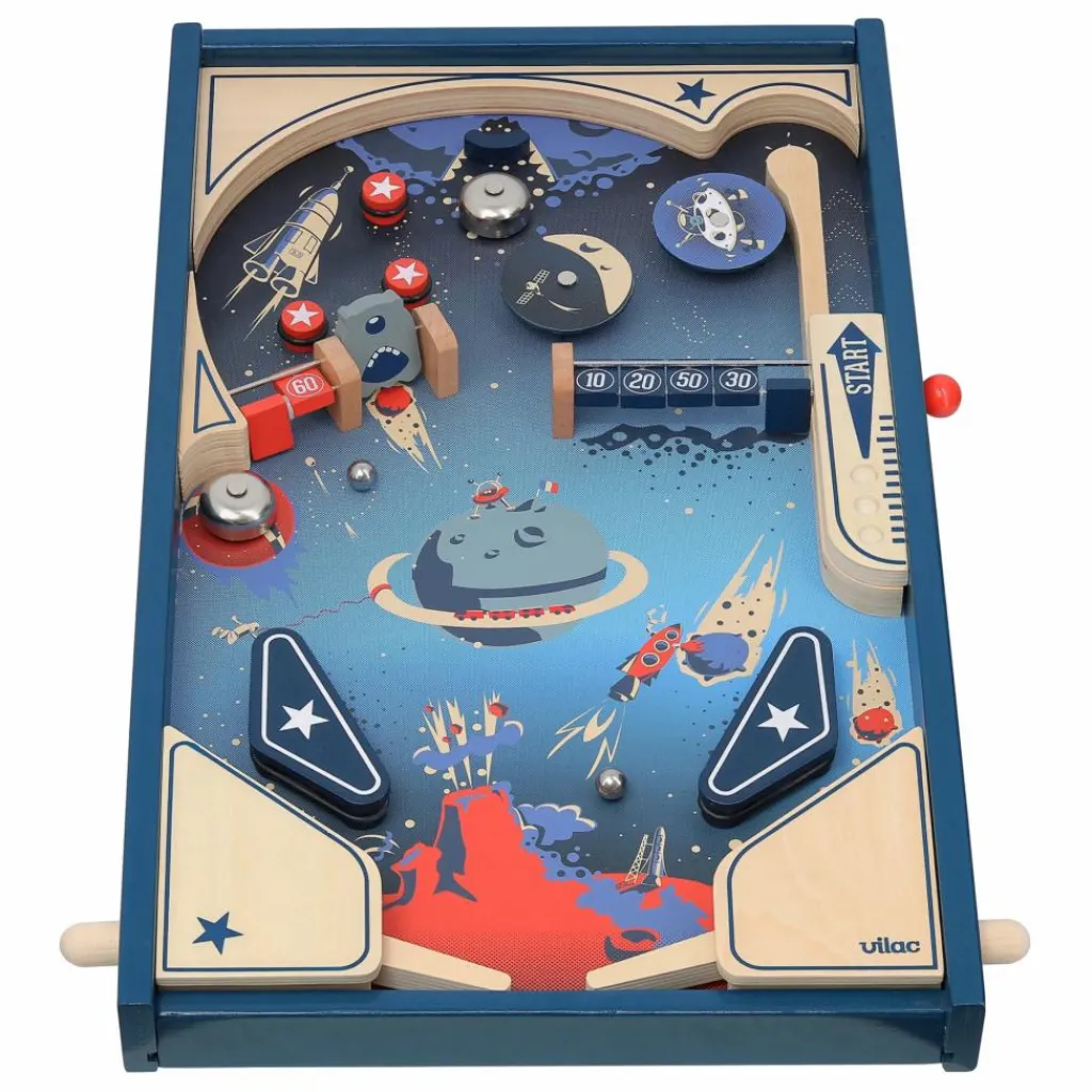 Ce flipper en bois à poser permet de dégommer les cibles, actionner les clochettes, emporter les tourniquets… Marquez le plus de points et remportez la bataille dans l’espace !