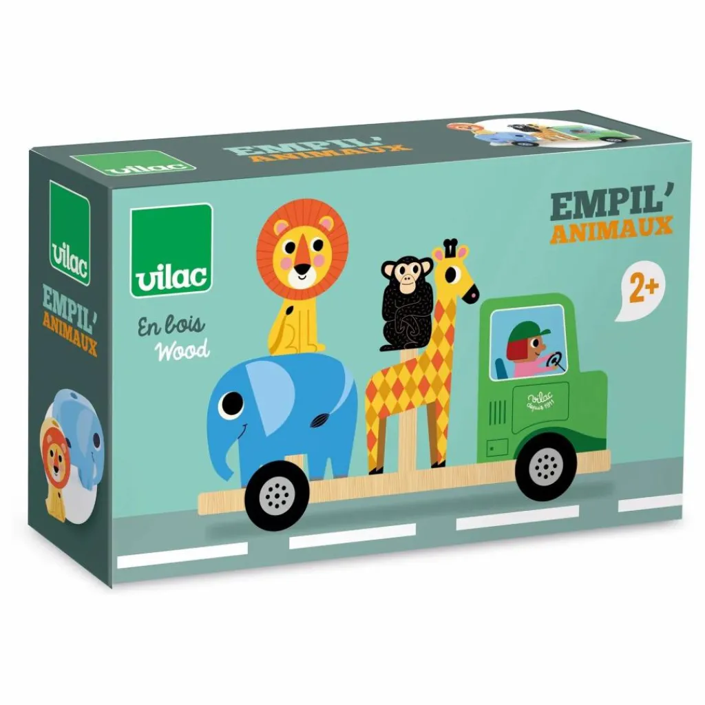 - • 1 camion et 1 remorque en bois.• 4 animaux en bois : éléphant, lion, singe et girafe.