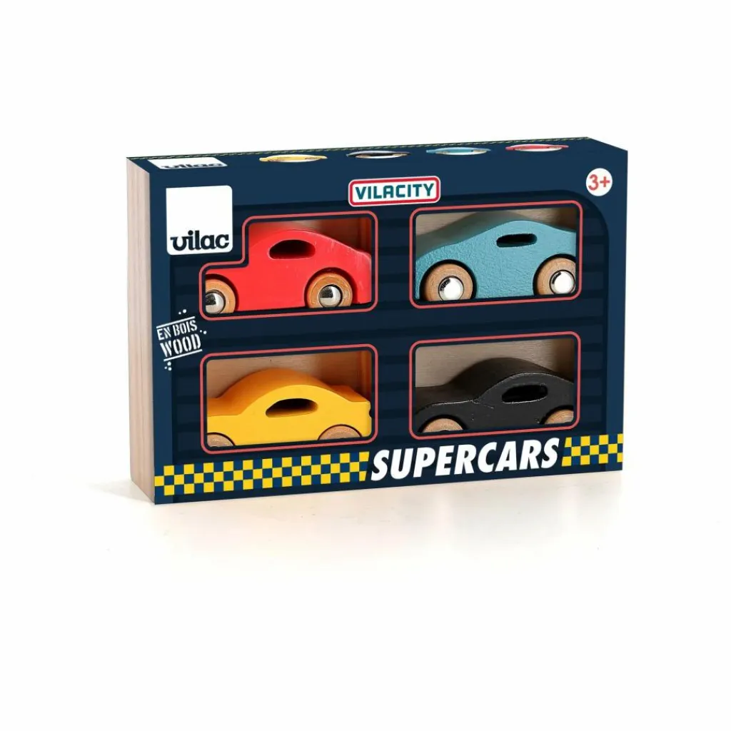 Ces 4 voitures Supers cars sont en bois massif, ce qui leur permet d’être durables dans le temps et d’être de véritables jouets intergénérationnels. Avec son format pratique, elles pourront se glisser dans les mains des petits à partir de 3 ans. Tous les enfants sont attirés par les jouets qui roulent, et que l’on manipule facilement. Craquez pour leur design unique, leurs couleurs acidulées, et leur rapidité. Évitez les embouteillages !Jouet d’éveil ou élément de décoration ?