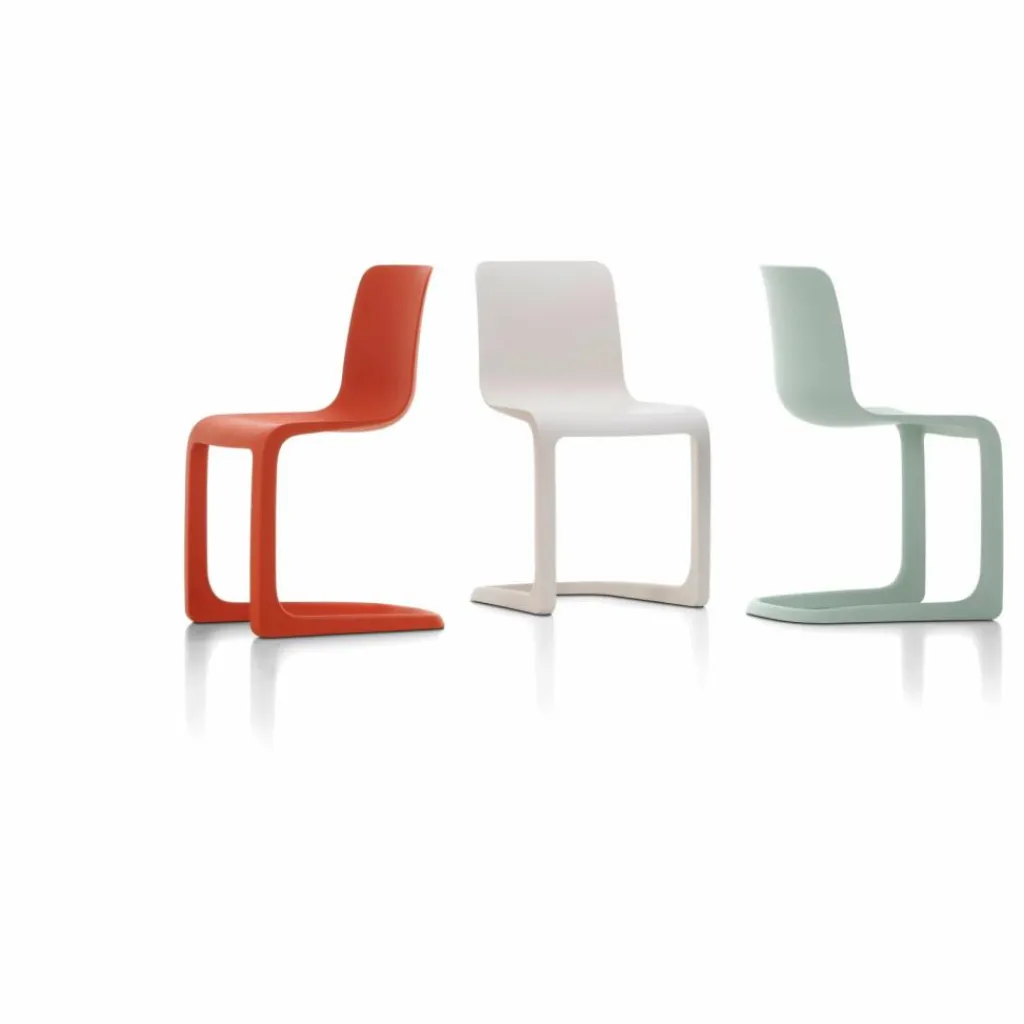 - Avec la chaise EVO-C, l’objectif du designer Jasper Morrison était de se passer de tous les détails superflus : la forme du siège combine la souplesse de l’acier tubulaire avec le confort d’une coque d’assise ergonomique. Sa silhouette est si gracile que le siège disparaît presque derrière l’utilisateur. Et lorsqu’il n’est pas utilisé, il ressemble à une sculpture à deux pieds qui émerge du sol et comble l’absence du propriétaire par son esthétique élégante et discrète.