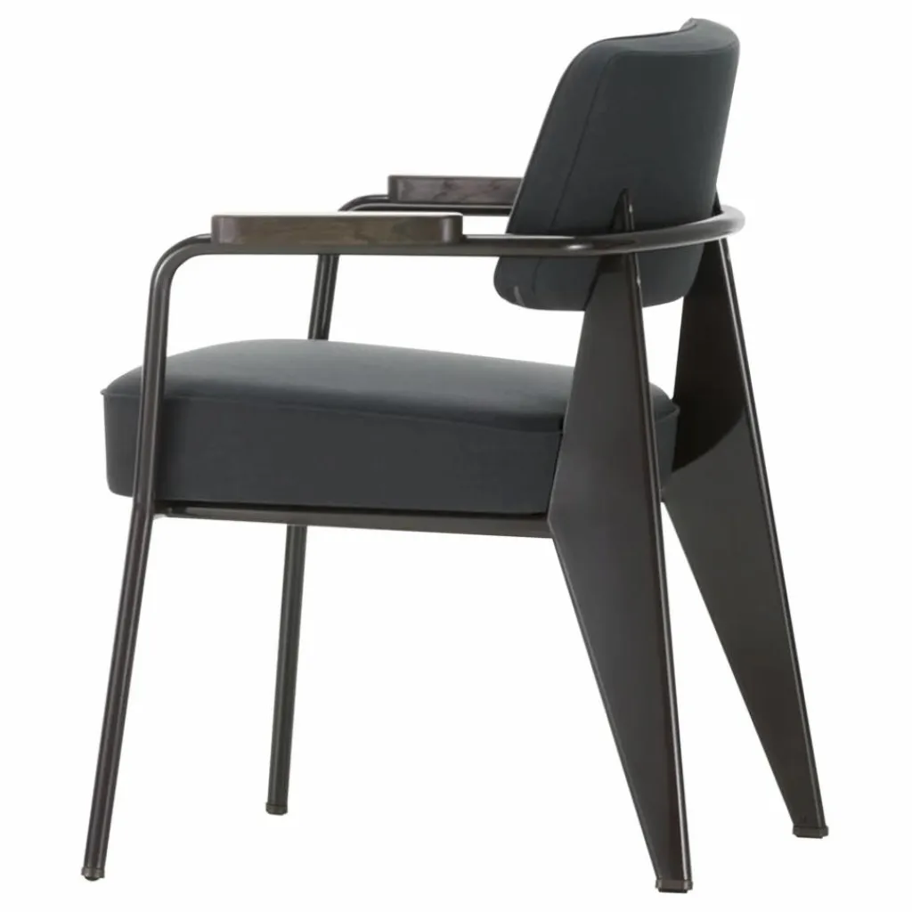 Le Fauteuil Direction est le fauteuil parfait pour votre bureau à domicile. Les principes constructeurs caractéristiques du designer Jean Prouvé sont mis en valeur par une assise au rembourrage confortable, pour offrir une pièce au design structuré et élégant. Le fauteuil Direction s’adaptera aussi très bien à votre espace de salle à manger.