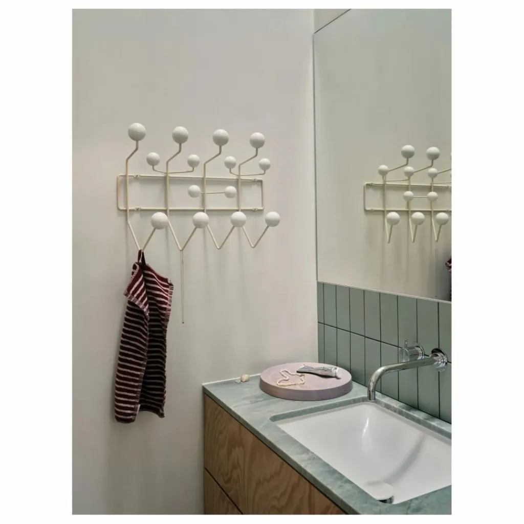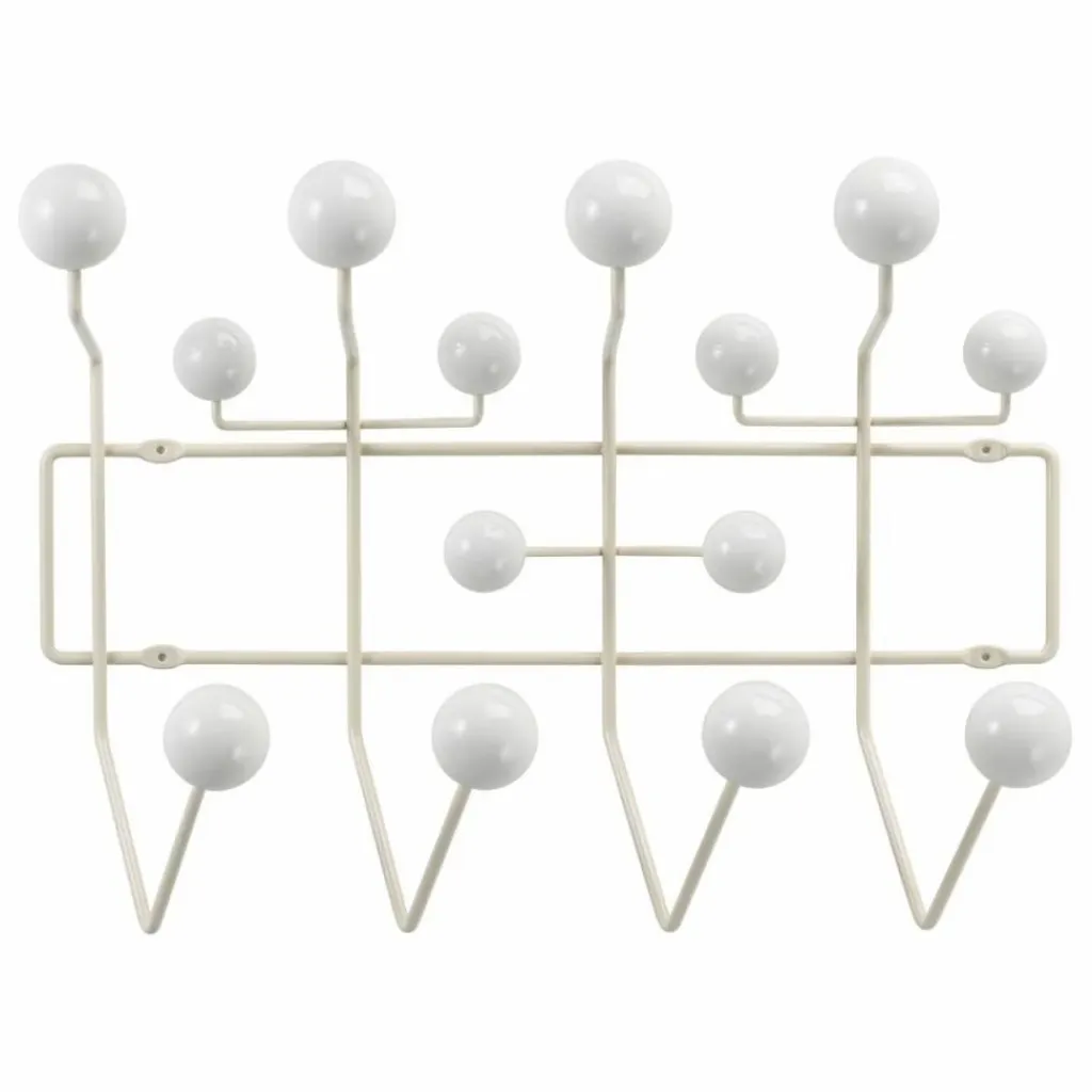 Le portemanteau « Hang it all » dessiné par Charles et Ray Eames, disponible dans une variété de combinaisons de couleurs, incite les enfants à y suspendre « toutes leurs affaires ». Avec ses boules de bois aux couleurs vives, « Hang it all » est une solution alternative ludique aux crochets monotones des portemanteaux, aussi bien dans la chambre des enfants qu’ailleurs.