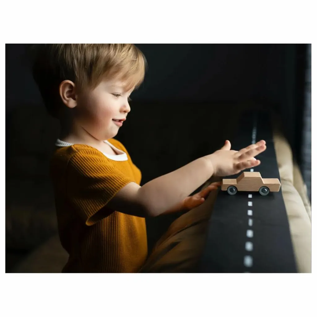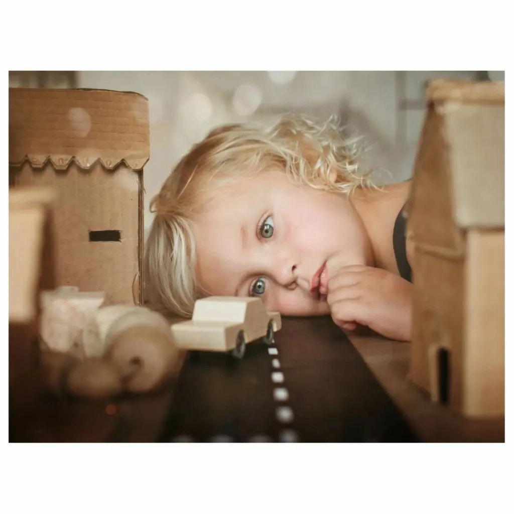voiture en bois originale et adorable. Mais où est donc l’avant et l’arrière de la voiture ? Laissez l’imagination de votre enfant décider et lui faire faire des va-et-vient !