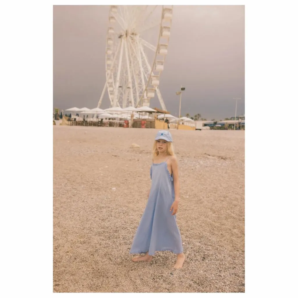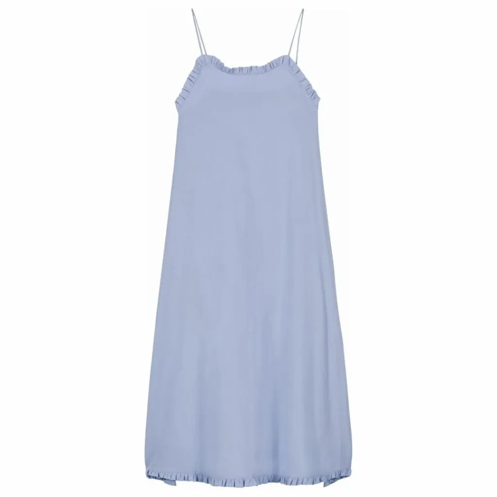 - Robe longue à fines bretelles avec bordures à volants 2 poches latérales
