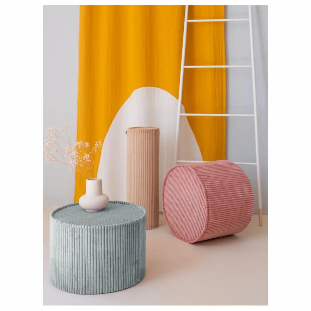 - Âge approprié : 3 – 7 ans. Taille : Diamètre : 39,5 x hauteur 25 cm (15,5 x 9,8 pouces) Poids : 1 kg (2,2 lbs) Coque extérieure : velours côtelé à larges fils, certifié OEKO-TEX® et GRS®, fabriqué à partir de bouteilles PET recyclées, 100 % polyester. Rembourrage : Mousse de polyuréthane certifiée ISO. Housse amovible : lavable en machine à 30°C avec des couleurs similaires. Fabriqué en Lettonie, UE.