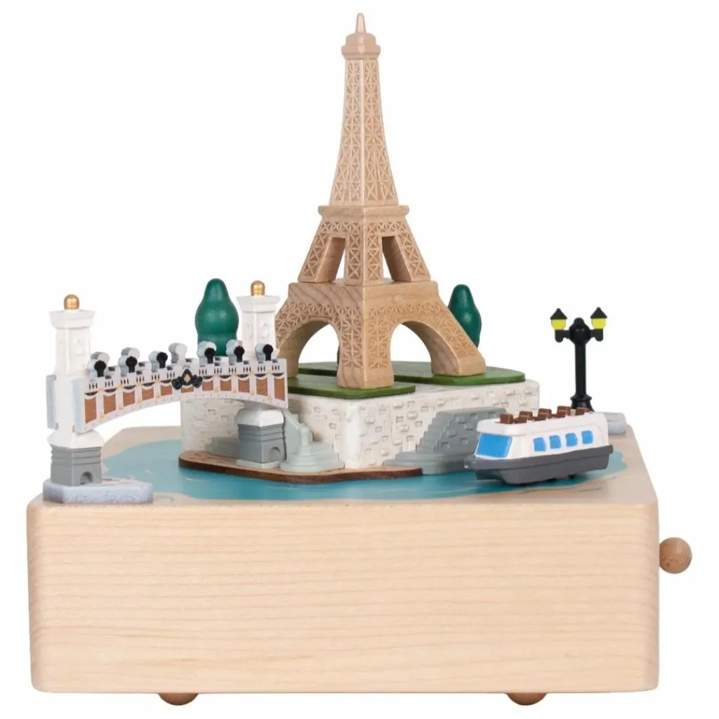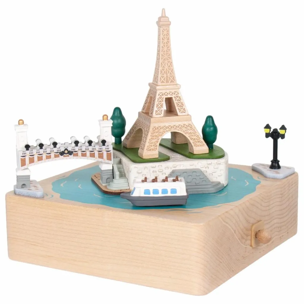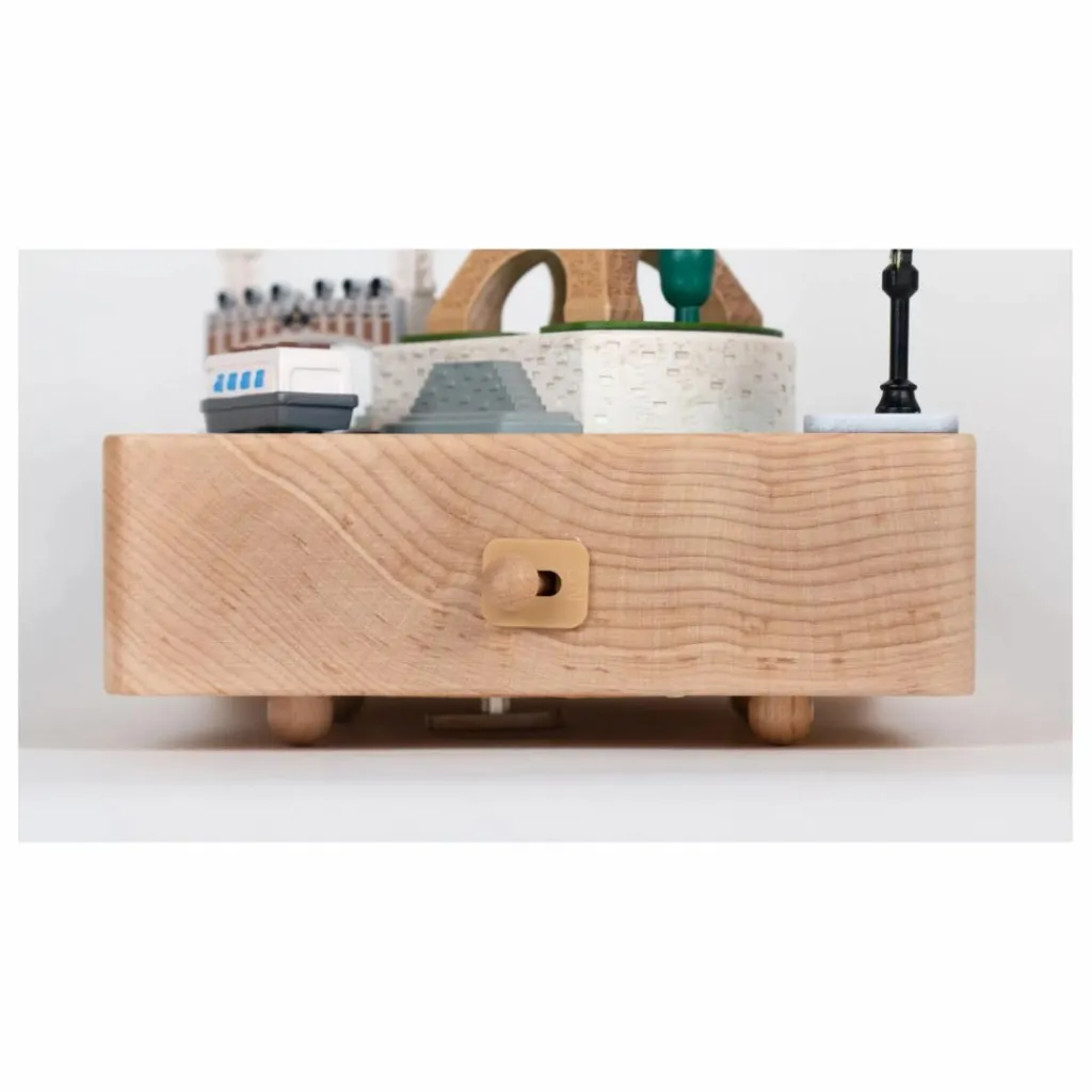 - Cette boite à musique est conçue dans la plus pure tradition artisanale et requièrent un travail d’orfèvre avec plus d’une centaine de manipulations minutieuses lors de leur fabrication. Elle se remonte manuellement et jouent pendant une centaine de secondes sa musique. cette mélodie mêlée au décor en mouvement de la boîte à musique en font un objet unique qui offre une émotion simple et universelle