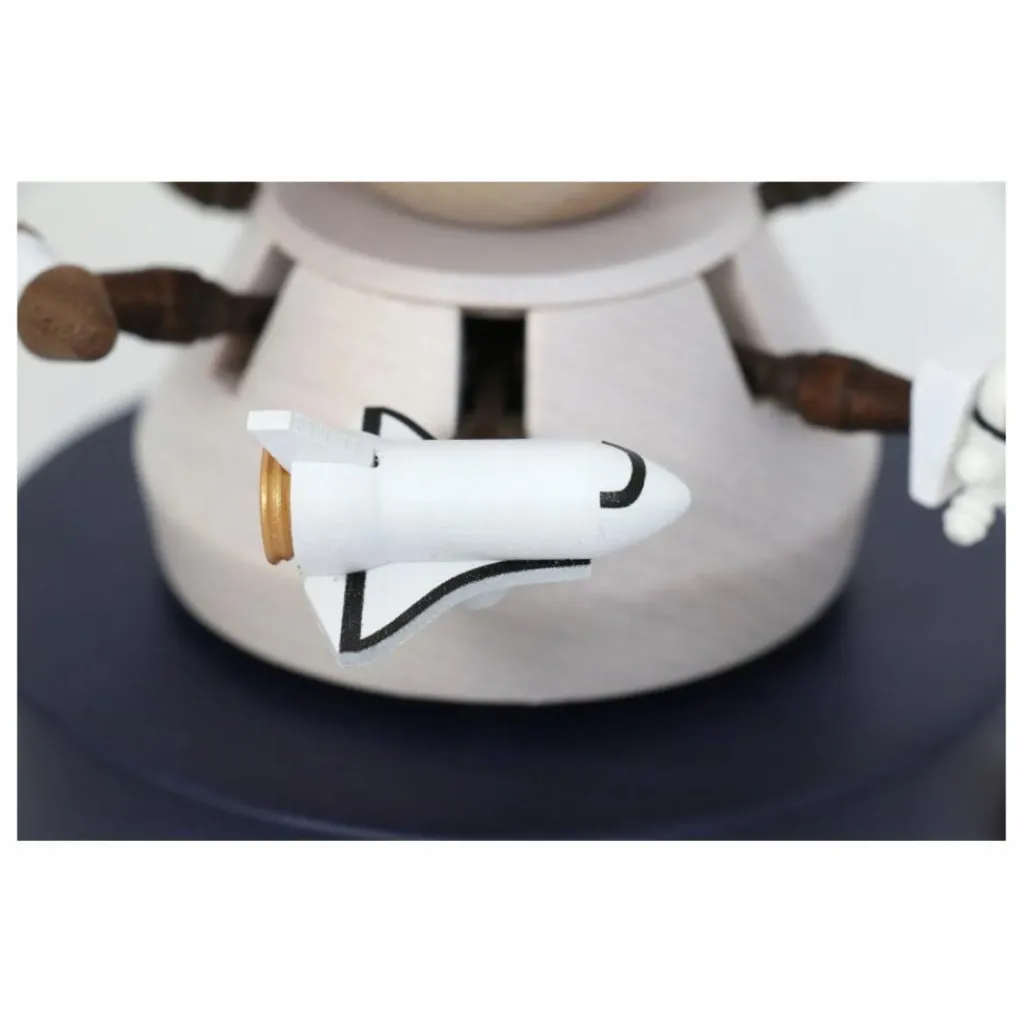 Cette boîte à musique a entièrement été réalisée en bois issu de forêts durables d’Europe, des États-Unis, du Canada et de Nouvelle Zélande. Le mouvement, créé à la main, est hérité du savoir-faire ancestral d’une manufacture japonaise. À remonter manuellement, elle joue une mélodie pendant une centaine de secondes, et livre le spectacle de son décor en mouvement.