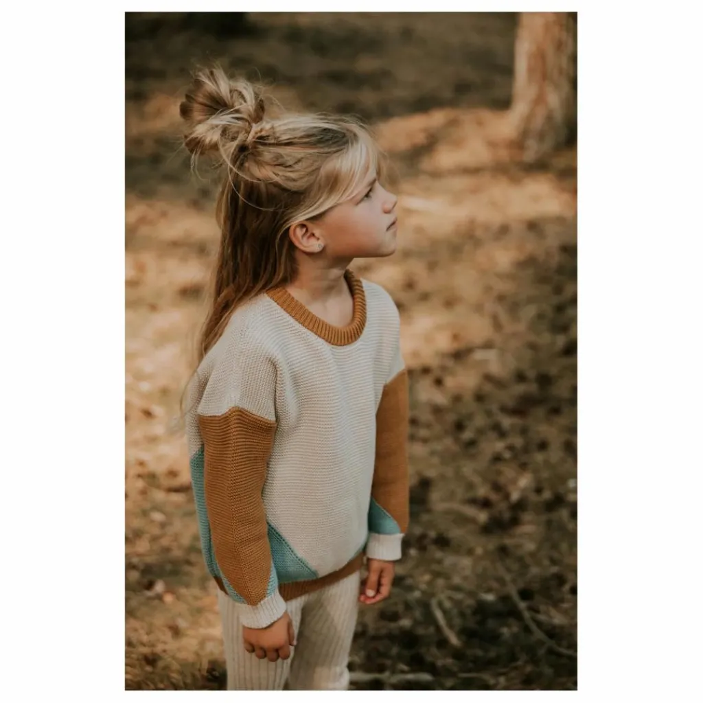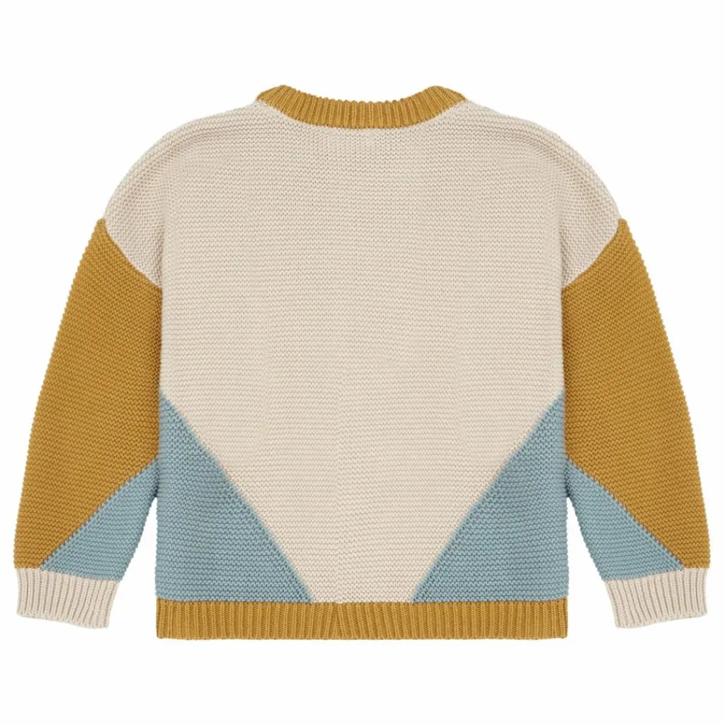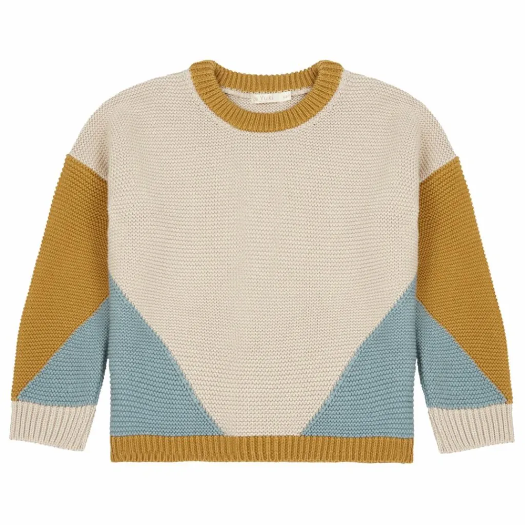 - Chaud, Emmanchures basses, Encolure ronde, Maille large, Manches longues, Bords-côtes, Etiquette de marque cousue , Tricolore